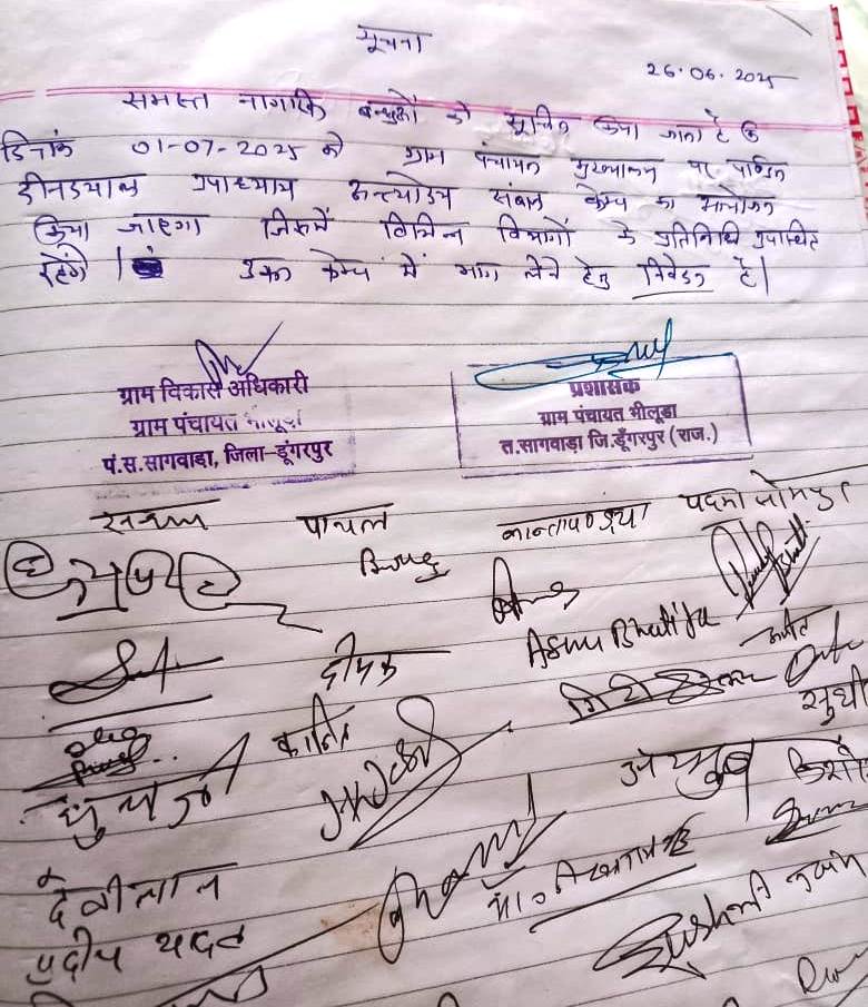 भीलूडा में अंत्योदय संबल शिविर औपचारिकता तक सीमित, कई विभागों के नहीं पहुचें अधिकारी, ग्राम पंचायत की सुचना में समय की जानकारी नहीं